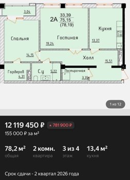 Площадь от 34.75 м2